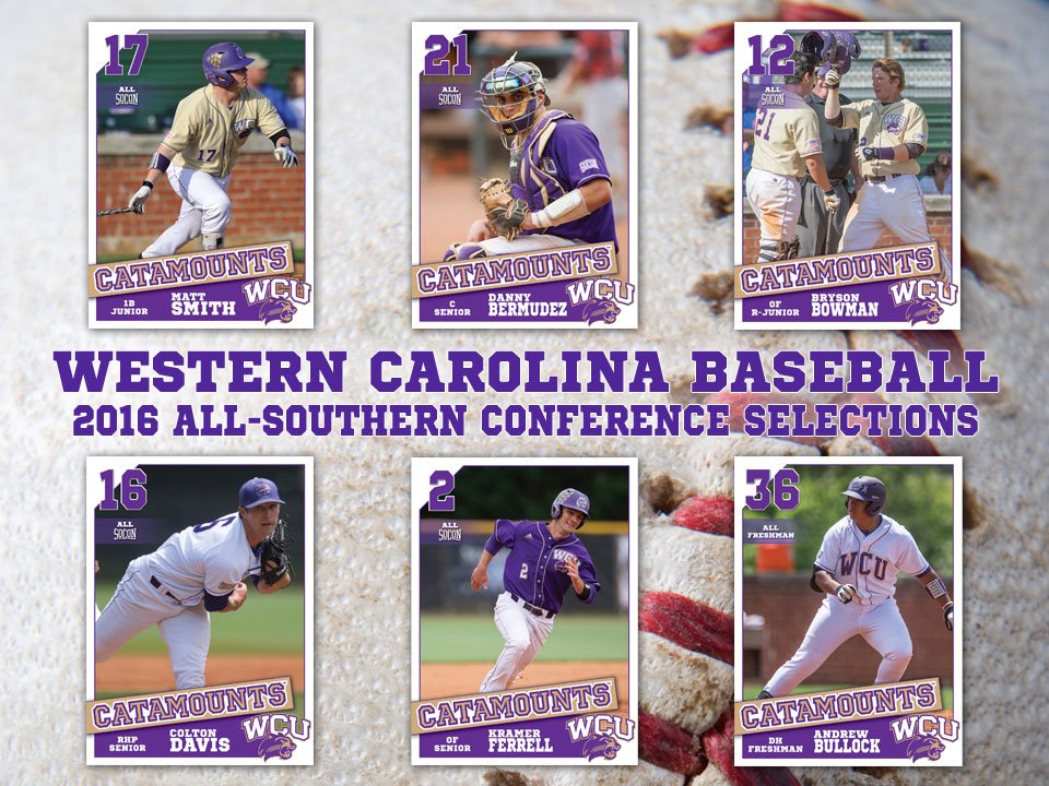 WCU's 2016 list is headlined by junior first baseman Matt Smith who garnered first team All-SoCon plaudits from both the league's head and the SoCon Sports Media Association (SCSMA). Senior catcher Danny Bermudez and redshirt junior outfielder Bryson Bowman were selected to the second team all-conference in both the coaches & media, while seniors Colton Davis and Kramer Ferrell were honored on the coaches' second team. Freshman Andrew Bullock was selected to the 12-member All-Freshman team as voted on by the league head coaches.